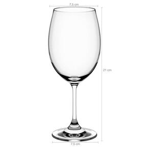 Garantia: 90 Dias / Peso: 1,080kg / Cor: Transparente / Ref: 56313104X6 Dimensões: 7,5cm (C) x 7,5cm (L) x 21cm (A) Diâmetro superior da taça: 6,2cm Diâmetro da base da taça: 7,5cm Espessura: 2mm Capacidade: 450ml Cuidados: - Manuseie com cuidado, evitando impactos; - Para prolongar a beleza de suas taças, lave-os com esponja macia e sabão ou detergente neutro. Enxágue bem com água morna e seque em seguida com um pano macio sem deixar fiapos; - Não use produtos abrasivos como palha de aço, pois eles podem riscar e danificar as taças. Ao lavar, separe as taças de outras louças como: pratos, panelas e talheres; - Nunca armazene as taças com o bojo virado para baixo, em contato com a superfície, exceto se estiverem em um rack com base ventilada. Caso contrário, corre-se o risco de acúmulo de odores nas taças; - Pode ir à lava-louças. Conteúdo: 6 taças de vinho tinto