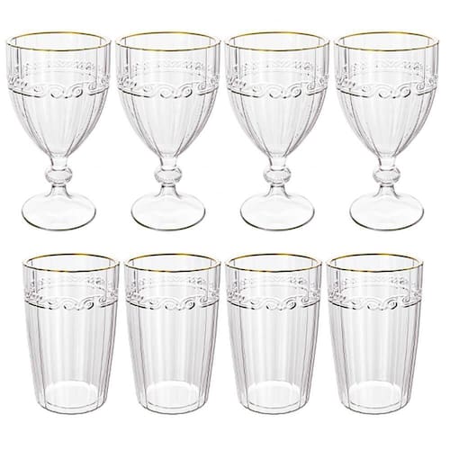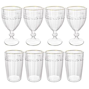 Conjunto De 4 Taças e Copos Imperial Transparente Fio de Ouro - Lyor