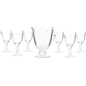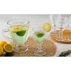 Ficha Técnica: Material: Vidro Capacidade da Taça: 330ml Capacidade da Jarra: 1.1L Peso Unitário: 350g Itens inclusos: 6 Taças + 1 Jarra Material: Vidro de alta resistência Cor: Cristal Transparente Acabamento: Lapidado em relevo com efeito facetado Altura aproximada: 16 cm Diâmetro aproximado: 8 cm Base: Larga e reforçada para maior estabilidade Lavável em lava-louças: Sim Design sofisticado e acabamento premium em vidro lapidado Ideal para servir bebidas com elegância e harmonia visual Alta resistência e durabilidade para uso frequente Perfeito para compor mesas de festas, jantares e confraternizações Marca: Não Informado