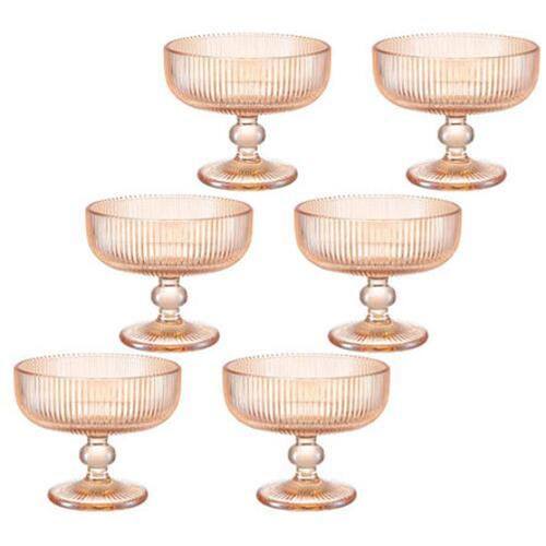 Jogo de taças vidro sobremesa filete dourado 310ml 06 pçs Jogo de taças de vidro para sobremesa com filete dourado com capacidade para 310 ml 06 peças Observação: As cores dos produtos podem sofrer variações em função das características do monitor e do ambiente durante sua visualização. Matéria prima: Vidro. Medida aproximada da embalagem: Compr. X Larg. X Alt. : 33X23X11 cm Cor: Transparente Ean: 7896980446616