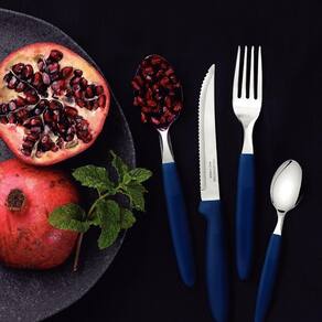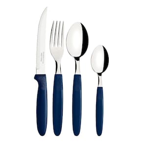Tipo de embalagem: Pote | Material do cabo: Plástico | Modelo detalhado: Ipanema | Marca: Tramontina | Modelo: Ipanema | Material da lâmina: Aço Inox | Fonte do produto: Tramontina | Linha: Ipanema | Unidades por kit: 24 | É kit: Não | Talheres incluídos: Garfo, Faca, Colher e Colher de Chá Cor: Azul