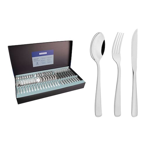 O que vem na caixa: 8 Colheres de Mesa 8 Colheres para Café 8 Colheres para Sobremesa 8 Facas para Mesa / Churrasco 8 Garfos de Mesa 8 Garfos para Sobremesa