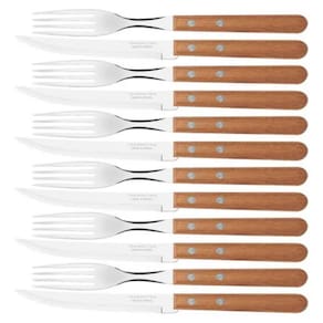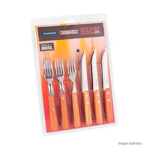 O Jogo de Talheres Tramontina Churrasco com Lâminas em Aço Inox e Cabos de Madeira Natural 12 Peças é a escolha perfeita para garantir durabilidade e conforto para os encontros. São 12 peças produzidas com cabo de madeira natural e rebites de alumínio, as lâminas das peças são em aço inox e possuem características que as tornam a melhor escolha para servir à mesa. As facas têm maior durabilidade do fio devido ao tratamento térmico e os garfos contam com lâminas com maior espessura e uma estampagem do aço que garante maior resistência. São itens que garantem bom gosto e sofisticação para servir os amigos.