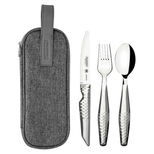 - Estojo prático para armazenar e transportar os talheres;