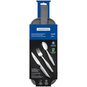 Jogo De Talheres Assistivos Tramontina Inox Estojo 4 Peças Jogo de Talheres Assistivos Tramontina em Aço Inox com Estojo 4 Peças O jogo de talheres Assistivos Tramontina em aço inox com Estojo 4 peças será seu companheiro perfeito durante as refeições, oferecendo conforto, estabilidade e autonomia. Ele foi especialmente desenvolvido para atender às necessidades de pessoas com dificuldade de movimentos nas mãos, sendo composto pelos três talheres ideais para as principais refeições: garfo largo e colher que possuem bojo mais profundo para maior estabilidade do alimento e faca com serrilha especial e ponta arredondada para garantir um corte eficaz com segurança. Os cabos dos talheres são mais robustos, maiores e possuem uma textura que proporciona firmeza, segurança e maior conforto durante a refeição, permitindo que você tenha mais confiança e independência ao utilizá-los. Além de todas essas características que visam à melhoria da qualidade de vida, ele ainda acompanha um estojo prático, que permite armazená-lo e levá-lo para qualquer lugar. Garanta o seu e tenha a autonomia que tanto deseja para suas refeições!