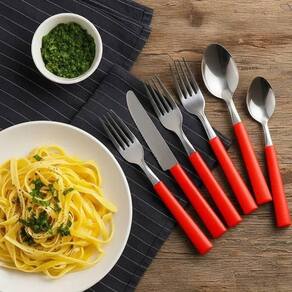 Modelo: Jogo De Talheres Cabo Vermelho 16 Peças Garfo Faca Colher