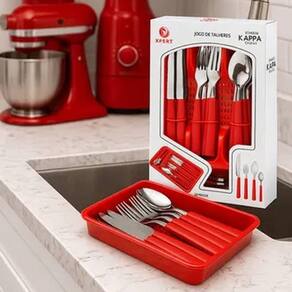 Jogo De Talheres Cabo Vermelho 24 Peças Garfo Faca Colher