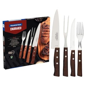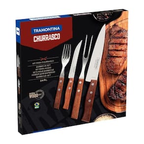 Jogo De Talheres Churrasco Tramontina Aço Inox Madeira Natural 14 Peças Surpreenda os seus convidados com um belo churrasco e toda a praticidade do jogo detalheres para churrasco Tramontina com lâminas de aço inox e cabos de madeira natural 14 peças da linha Churrasco. Desenvolvido especialmente para honrar esse momento, o jogo é produzido com lâminas em aço inox. Acompanha facas e garfos com cabos produzidos em madeira natural, permitindo que você possa aproveitar muitos momentos com toda a qualidade que só a Tramontina oferece. Linha ou Coleção - Churrasco Modelo - 22299011 Quantidade de Peças - 14 Composição - 1 Faca Peixeira 7 Tradicional;6 Faca para Churrasco/ Frutas 5 Tradicional;6 Garfo de Mesa Tradicional;1 Garfo de Mesa Tradicional. Material da lâmina - Aço Inox Material do cabo - Madeira Cor - Natural Mais Informações - Lâminas de aço inox.As lâminas das facas têm maior durabilidade do fio devido ao tratamento térmico.As lâminas dos garfos contam com maior espessura e uma estampagem do aço que garante maior resistência, evitando deformações.Cabos de madeira natural com rebites de alumínio. Peso - 0.48 kg Marca - Tramontina do Fabricante - 3 meses para defeitos de fabricação EAN - 7891112076877