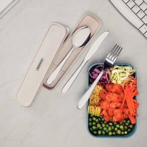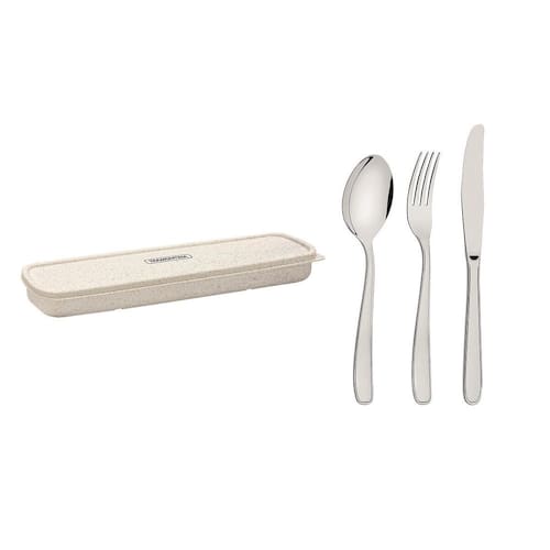 Com talheres básicos e indispensáveis como colher, garfo e faca produzidos em aço inox, ele é essencial para realizar suas refeições fora de casa.