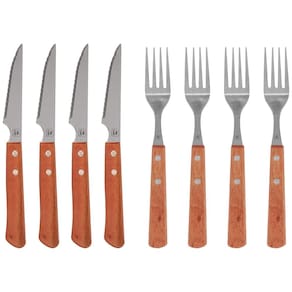 Conjunto de Talheres para Churrasco Bel – Praticidade e Elegância à Mesa! O Conjunto de Talheres para Churrasco Bel foi pensado para tornar seus momentos à mesa ainda mais especiais, seja no churrasco de domingo ou em refeições do dia a dia. Com design rústico e funcional, une durabilidade e conforto em cada detalhe. O conjunto inclui: 4 facas em aço inoxidável com cabo anatômico de madeira – cortes firmes e precisos Dimensões: 22,1 x 2,2 x 1,5cm 4 garfos em aço inoxidável com cabo anatômico de madeira – praticidade e estilo na hora de servir Dimensões: 20,5 x 2 x 1,2cm Dica de uso: Para garantir a durabilidade e beleza das peças, seque bem após a lavagem – inclusive se utilizar a lava louças. Funcionalidade, resistência e um toque de sofisticação em cada refeição. Aposte no Conjunto de Talheres Bel!