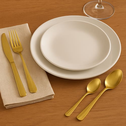 O Jogo de Talheres 24 Peças de Inox Dourado, é a escolha perfeita para quem busca qualidade e beleza.