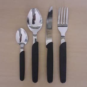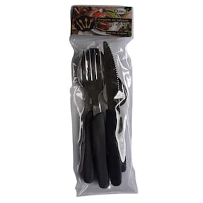 Conjunto de Talheres em aço inox com cabo plástico na cor preta de excelente qualidade. Decore sua mesa de jantar com estilo e sofisticação do este jogo de talheres