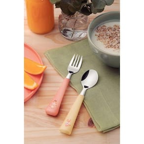 Jogo de Talheres Infantil Tramontina Baby Friends com Lâminas de Aço Inox e Cabos de Polipropileno Colorido 02 Peças