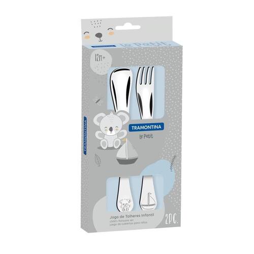 Jogo de Talheres Infantil Tramontina Le Petit em Aço Inox Meninos Acabamento Brilho com Desenho em Alto Relevo 2 Peças