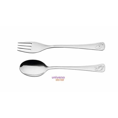 Jogo de Talheres Infantil Tramontina em Aço Inox Acabamento Brilho com Desenho em Alto Relevo 2 Peças Para incentivar a autonomia das crianças e tornar o momento da refeição mais divertido o Jogo de Talheres Infantil Tramontina em Aço Inox Acabamento Brilho com Desenho em Alto Relevo 2 Peças da linha infantil Baby é a melhor opção. Com gravações em alto relevo, cada uma diferente da outra. A escolha perfeita para papais e mamães que buscam por produtos práticos e de qualidade para os pequenos. O jogo é produzido totalmente em aço inox, portanto, as peças não soltam nenhum resíduo nos alimentos, mantendo-os saudáveis, além de serem altamente resistentes. Os talheres contam com formato ergonômico, permitindo que a a criança utilize com mais facilidade o talher. Elas também podem ser lavadas diariamente na máquina de lavar. Informações Gerais A linha infantil Baby é a mais tradicional da Tramontina para papais e mamães que buscam produtos com a higiene do aço inox.Totalmente feitos de aço inox, por isso não soltam nenhum resíduo nos alimentos, mantendo-os saudáveis. Altamente duráveis mantêm suas características originais, preservando a beleza, a higiene e a durabilidade do material. Talheres com formato ergonômico e com variação de desenhos, especialmente criados para incentivar e auxiliar no desenvolvimento das crianças. Acabamento em brilho, com desenhos estampados em alto-relevo. Podem ser lavados diariamente na máquina de lavar louças. Recomendações de Uso Durante a lavagem, use apenas sabão ou detergente e uma esponja macia. Outros tipos de produtos, como palha de aço, poderão riscar ou prejudicar o brilho dos talheres. Enxágue bem cada peça a fim de remover totalmente os resíduos dos produtos de limpeza, pois, por serem abrasivos, podem prejudicar o inox. Sempre que possível, use água quente, pois renova o brilho do talher. Após a lavagem, enxugue imediatamente os talheres, caso contrário, as substâncias químicas da água (cloro) poderão causar manchas. Evite atrito entre os talheres durante o processo de lavagem e no armazenamento, para mantê-los sem riscos. Evite o contato das peças com superfícies quentes. Elas provocam a descoloração do produto. Não guarde os talheres em locais úmidos. A umidadetambém provoca manchas. Ao usar a lava-louça, recomendamos retirar os talheres logo que tenha terminado o ciclo ''enxaguar'', a fim de que sejam secados manualmente.