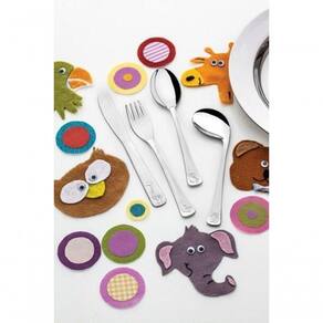 - Utensílios totalmente feitos em aço inox, altamente duráveis e higiênicos.- Bordas dos utensílios polida, lisa, sem rebarbas, evitando assim qualquer tipo de acidente ao manuseá-la.- Peças com desenho em alto relevo, não havendo nenhum risco de a criança se machucar.- Acabamento em brilho. Ean: 7891116001271