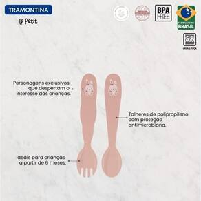 Jogo De Talheres Infantil Tramontina Le Petit 2 Peças Rosa O jogo de talheres Infantil Tramontina Le Petit rosa 02 peças vai tornar a refeição do seu bebê muito mais especial e instigante. Os talheres do jogo são produzidos em polipropileno e todos contam com proteção antimicrobiana que inibe o crescimento de fungos e bacterias durante toda sua vida util. Deixe a rotina alimentar do seu bebê muito mais divertida e gostosa com a Tramontina! Recomendações de Uso: Recomenda-se o uso destes produtos para crianças com 6 meses ou da primeira utilização, lave bem as peças e produtos podem ir à máquina de lavar, porém não recomendamos usar produtos abrasivos como saponáceos, esponjas rígidas ou palhas de aço. Seque-os bem antes de descarte dos produtos e embalagem siga as orientações de reciclagem ção: Por razões de e saúde do seu filho, utilizar sempre os produtos com supervisão de um adulto. Não utilize os produtos caso apresentarem dano ou . Verifique sempre a temperatura do alimento antes da alimentação. Informações Adicionais: