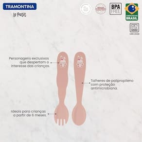 O jogo de talheres Infantil Tramontina Le Petit rosa 02 peças vai tornar a refeição do seu bebê muito mais especial e instigante. Os talheres do jogo são produzidos em polipropileno e todos contam com proteção antimicrobiana que inibe o crescimento de fungos e bacterias durante toda sua vida util. Deixe a rotina alimentar do seu bebê muito mais divertida e gostosa com a Tramontina!OrientaçõesTalheres de polipropileno com proteção antimicrobiana incorporada no processo de injeção que dura por toda vida útil do produto, inibindo o crescimento de bactérias e fungos.