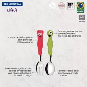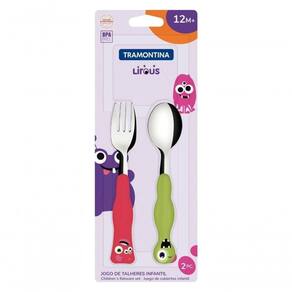 Jogo De Talheres Infantil Tramontina Lirous 2 Peças Colorido Com o jogo de talheres infantil Tramontina Lirous colorido 02 peças você irá proporcionar uma refeição muito mais agradável e cheia de diversão para os pequenos. Os talheres são produzidos com lâminas em aço inox e cabos de polipropileno, o que lhes proporciona alta resistência e durabilidade. Eles ainda são coloridos e vão estimular ainda mais os sentidos das crianças! Recomendações de Uso: Recomenda-se o uso destes produtos para crianças com 12 meses ou cuidado ao manusear o garfo por ser produto da primeira utilização, lave bem as peças e produtos podem ir à máquina de lavar, porém não recomendamos usar produtos abrasivos como saponáceos, esponjas rígidas ou palhas de aço. Seque-os bem antes de descarte dos produtos e embalagem siga as orientações de reciclagem ção: Por razões de e saúde do seu filho, utilizar sempre os produtos com supervisão de um adulto. Não utilize os produtos caso apresentarem dano ou . Verifique sempre a temperatura do alimento antes da alimentação. Informações Adicionais: