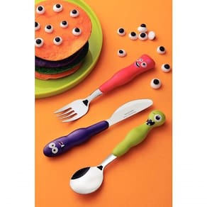 Lâminas de aço inox com bordas arredondadas que não machucam a boca da crianç de polipropileno que possuem maior resistência e durabilidade.Talheres com proteção antimicrobiana incorporada no processo de injeção que dura por toda vida útil do produto, inibindo o crescimento de bactérias e ir a máquina de lavar louças, facitando a limpeza.Produtos Livre de BPA: O Bisfenol-A é um componente químico na produção de alguns plásticos como o Policarbonato. Este componente pode ser prejudicial à saúde e por isso a Tramontina não o utiliza em seus produtos. Ean: 7891112302211