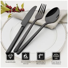 O Conjunto de Talheres KINGSTONE para 4 pessoas inclui 4 garfos de salada, 4 garfos de jantar, 4 facas, 4 colheres de sopa e 4 colheres de sobremesa. Essencial para famílias e restaurantes. Feito em aço inoxidável 18/10 de alta qualidade, este conjunto de talheres é durável e resistente à corrosão. Com um acabamento espelhado elegante resultante de 6 polimentos manuais, o conjunto é confortável de segurar e sem bordas ásperas. O revestimento em titânio torna a superfície dos talheres mais forte, evitando desbotamento ou rachaduras. Fácil de limpar, o design sem desperdício e o corpo estilizado facilitam a limpeza. Ideal para uso diário, festas, acampamentos, restaurantes, banquetes de casamento e também como presente.