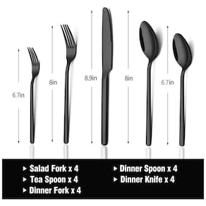 Componentes Inclusos: 4 garfos de salada, 4 garfos de jantar, 4 facas, 4 colheres de sopa e 4 colheres de sobremesa,