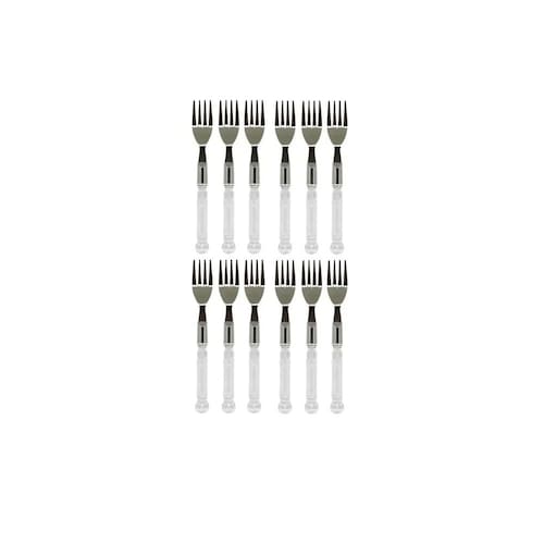 Jogo De Talheres Para Bolo C/12 Peças Inox Cabo TransparenteNosso lindo conjunto para bolos casita 12 peças é ideal para você que preza por charme e elegância ao servir seus bolos.Produzido em aço inoxidável e com cabo em poliestireno transparente traz um requinte de luxo e praticidade.Contém:12 GarfosCaracterísticas principais:Material: Inox + PSDimensões da Peça:Garfos: 16 x 2,5 x1,5cmMaterial: Aço inox, PSMarca: CasitaCuidados:Lavar antes de usar.Lave sempre com uma esponja macia, detergente neutro e água corrente.Não use produtos abrasivos, palha de aço ou objetos pontiagudos.Após a lavagem, seque bem o produto antes de guardá-lo. Guarde em local seco.A ATENÇÃO:- As peças afiadas podem furar ou cortar, tenha cuidado ao usá-las.- Manter fora do alcance de crianças.Material: Inox + Plástico (PS)Contém: 12 GarfosAproveite a oportunidade e garanta já seu conjunto!!