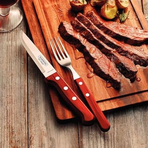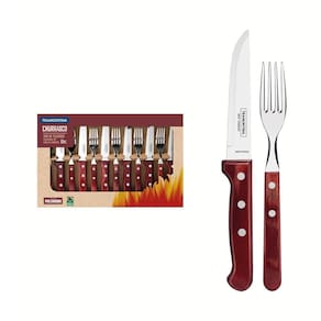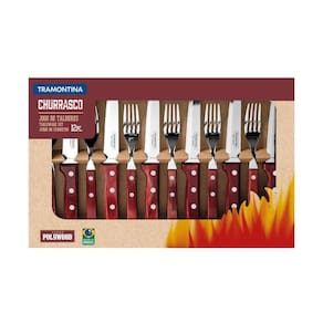 Jogo de Talheres Para Churrasco Em Aço Inox Com Cabo Vermelho Polywood 12 Peças - Tramontina 21198776