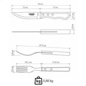 - O jogo da linha Churrasco é produzido com lâminas em aço inox, altamente durável, com cabos de madeira tratada Polywood, oferecendo resistência à impactos e altas temperaturas.