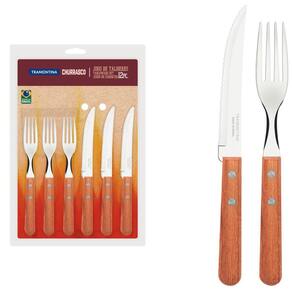 Jogo de Talheres Tramontina Churrasco 12 Peças Dynamic em Aço Inox e Madeira Natural.