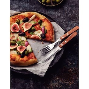 Lâminas de aço inox.As lâminas das facas têm maior durabilidade do fio devido ao tratamento térmico.As lâminas dos garfos contam com maior espessura e uma estampagem do aço que garante maior resistência, evitando deformações.Cabos de madeira natural com rebites de alumínio.