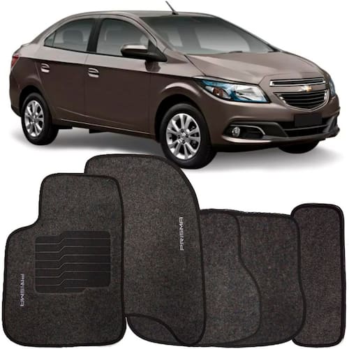 Jogo de Tapete Automotivo Carpete Chevrolet Prisma 2013 à 2019 Soft Logo Bordado Grafite 5 Peças