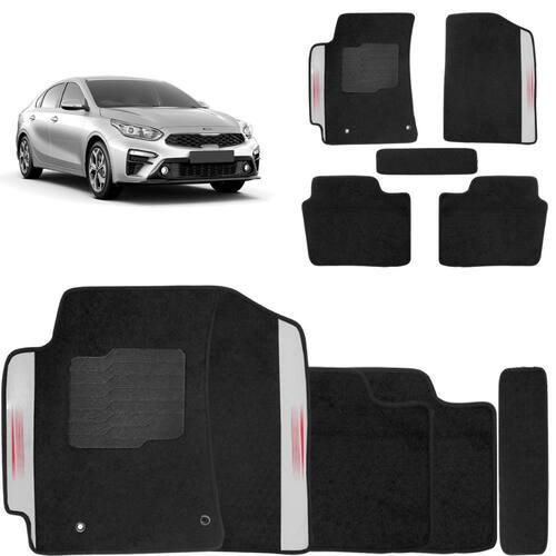 Fabricado em carpete automotivo, material já conhecido pela excelente qualidade e resistência. Além da sua base emborrachada para proporcionar uma melhor fixação no assoalho do veículo.