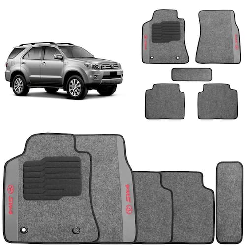 Fabricado em carpete automotivo, material já conhecido pela excelente qualidade e resistência. Além da sua base emborrachada para proporcionar uma melhor fixação no assoalho do veículo.
