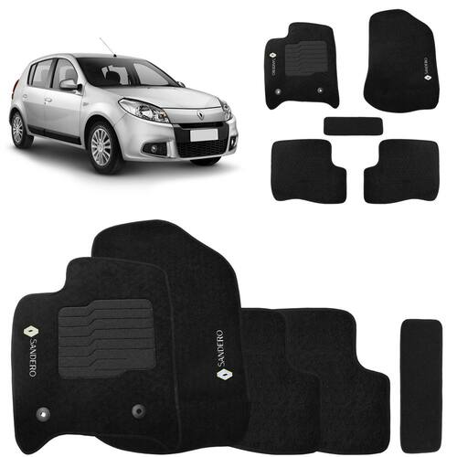 Jogo de Tapete Carpete Sandero 2008 a 2024 Preto com trava 5 Peças - Ecotap