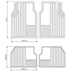 Textura antiderrapante; Se adequa a vários modelos de veículos, possuindo demarcações especiais para corte e ajuste de tamanho.Características GeraisEAN137891114162646DUN1417891114162643NCM4016.99.90Peso Líquido4,3000 kg.Peso Bruto4,4000 kg.Metragem0,014196 m.Dimensões Embalagem (Compr. X Larg. X Alt.)780x 520x 35 mm.Dimensões Produto (Compr. X Larg. X Alt.)710x 505x 405 mm.Observações