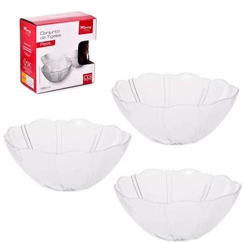 Jogo de tigela de vidro sobremesa petit com 3 pecas 350ml Jogo de tigela de vidro redonda para sobremesa petit com 3 pecas 350ml 12,5cmo na caixa - wincy
