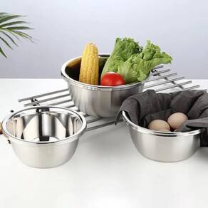 Possui design moderno proporcionando ao seu dia a dia mais praticidade, versatilidade e requinte na hora de servir. Leve saladas, massas, guarnições e molhos à sua mesa com mais estilo e qualidade. Feito em aço inox, altamente durável e resistente, preserva a beleza e a higiene do material. Tigelas fundas e material grosso em 3 tamanhos variados para você poder utilizar com vários tipos de alimentos. Conjunto ideal para sua cozinha! Lavável em Lava-Louças