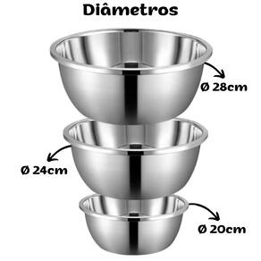 Conjunto Jogo de Tigelas Vasilhas Redonda Bowls em Aço Inox Multiuso Funda Kit com 3 peças