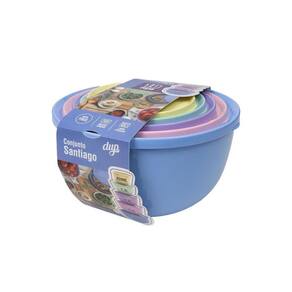 Jogo De Tigelas com tampa Santiago potes Dup - 5 Peças O Jogo de Tigelas DUP Santiago com Tampa combina qualidade, praticidade e organização. Feitas em material resistente e durável, preservam o sabor dos alimentos e possuem design inteligente, permitindo o encaixe entre si para economizar espaço. Suas tampas com fechamento preciso garantem mais praticidade no armazenamento. O conjunto inclui cinco tigelas em tamanhos variados: 4,7L grandes preparos , 3,1L porções médias , 2,2L saladas e massas , 1,3L sobras e acompanhamentos e 850ML pequenas porções e lanches . Disponível nas cores azul, rosa, lilás, verde e amarelo. Características: Material: Plástico Polipropileno. Marca: Dup. Linha: Santiago. Dimensões dos produtos: 4,7L - Ideal para grandes preparos. 3,1L - Perfeito para porções médias. 2,2L - Excelente para saladas e massas. 1,3L - Ótimo para sobras e acompanhamentos. 850ML - Ideal para pequenas porções e lanches. Informações de Uso: Pode ir a Lava- Louças. Pode ir ao Micro-Ondas. Lavar com esponja macia e detergente neutro. Sem utilizar produtos abrasivos. Conteúdo da Embalagem: 01 Jogo De Tigelas Santiago Dup 5 Peças. Atenção: A cor e detalhes podem variar entre as imagens mostradas acima e o produto. Imagem meramente ilustrativa. Fabricante : Contra defeitos de fabricação. Marca: Não Informado