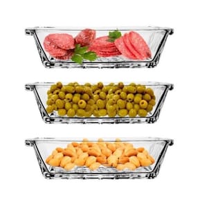 Jogo De Tigelas para Servir 3 Peças De Vidro Retangular