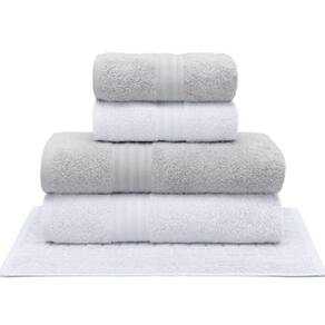 Jogo De Toalha Buettner 5 Peças Algodão Egípcio Platine Color Prata E Branco Jogo de Toalhas 5 peças, sendo 02 Toalhas de Banho Gigante Platine, 02 Toalhas de Rosto Platine em 100% Algodão Egípcio, e 1 Toalha de Piso Domus, 100% Algodão, com 500g/m da linha Nobre e da marca Bouton. Produzida em teares especiais que possibilitam desenvolver desenhos tanto no corpo quanto nas barras das toalhas. A toalha Platine possui corpo liso com bastante felpa e uma barra discreta e suave com linhas horizontais, apenas para dar um charme ao expor ela. Seu corpo liso possui alta absorção, e sua barra minimalista possui detalhes horizontais, destacando um tom de charme e nobreza, proporcionando uma linda exposição no banheiro, traduzindo refinamento e muita sofisticação ao ambiente. Suas cores buscam remeter aos tons nobres da estação. Jogo de Toalha Buettner 5 peças Algodão Egípcio Platine Color Prata e Branco