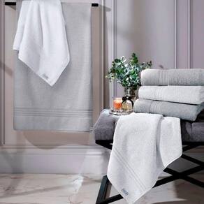 Conteúdo e Medidas: Jogo de Toalha Platine Color - Branco e Prata - 5 peças 02 Toalhas de Banhao Gigante Platine ( 81cm x 1,50m ) 02 Toalhas de Rosto Platine:( 50cm x 80cm ) 01 Toalha de Piso Domus:( 50cm x 80cm )