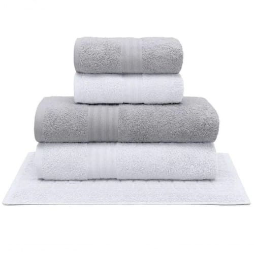 Jogo De Toalha Buettner 5 Peças Platine Cinza E Branco Jogo de Toalhas 5 peças, sendo 02 Toalhas de Banho Gigante Platine, 02 Toalhas de Rosto Platine em 100% Algodão Egípcio, e 1 Toalha de Piso Domus, 100% Algodão, com 500g/m da linha Nobre e da marca Bouton. Produzida em teares especiais que possibilitam desenvolver desenhos tanto no corpo quanto nas barras das toalhas. A toalha Platine possui corpo liso com bastante felpa e uma barra discreta e suave com linhas horizontais, apenas para dar um charme ao expor ela. Seu corpo liso possui alta absorção, e sua barra minimalista possui detalhes horizontais, destacando um tom de charme e nobreza, proporcionando uma linda exposição no banheiro, traduzindo refinamento e muita sofisticação ao ambiente. Suas cores buscam remeter aos tons nobres da estação. Jogo de Toalha Buettner 5 peças Platine Cinza e Branco