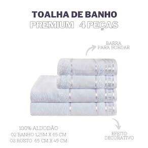 As toalhas de banho PREMIUM são produzidas com corpo liso, uma linda barra para bordar e belíssimos efeitos decorativos.