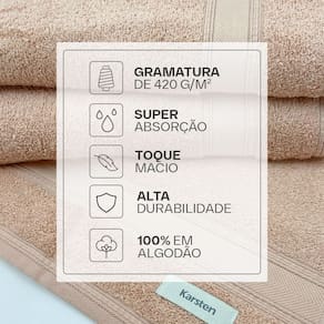 Características: Tecido: 100% algodão Gramatura: 420g/m²; Super absorção; Toque macio Com tecnologia Karsten Softmax