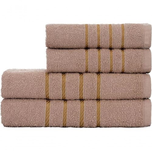 Jogo De Toalha Montreal 2 Banho + 2 Rosto Dourado 100% Algodão Alta Absorção Bege - Única