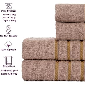Composição - 2 Toalhas de Banho + 2 Toalhas de RostoGramatura - 330 G/m Peso Toalha de Banho - 290 a 300 Gramas Peso Toalha de Rosto - 110 a 120 GramassTamanho Toalha de Banho - 70x130 cm Tamanho Toalha de Rosto - 45x70 cm Fio - 16/1