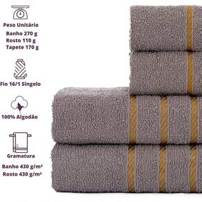Jogo De Toalha Montreal 2 Banho + 2 Rosto Dourado 100% Algodão Alta Absorção Cinza - Única