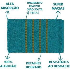 O tingimento é reativo deixando a Toalha Montreal com cores modernas e vivas, por ser reativo não tem o risco de soltar tinta. Essa toalha contém a barra decorada em dourado para dar um toque de modernidade e luxo ao seu Ambiente.